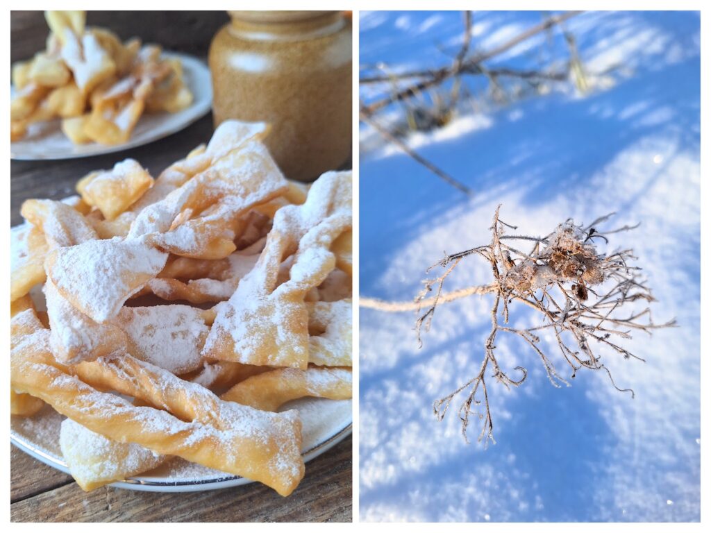 Chrust bekannt auch als Faworki ist polnisches Schmalzgebäck. Besonders beliebt in der Karnevalszeit. Der Name Chrust/ sprich: hrust) bedeutet der Reisig. Und genauso müssen diese frittiertenTeigstreifen sein. Knusprig und zebrechlich. Wie das trockene Holz, das beim Biegen sofort knackt und abbricht.