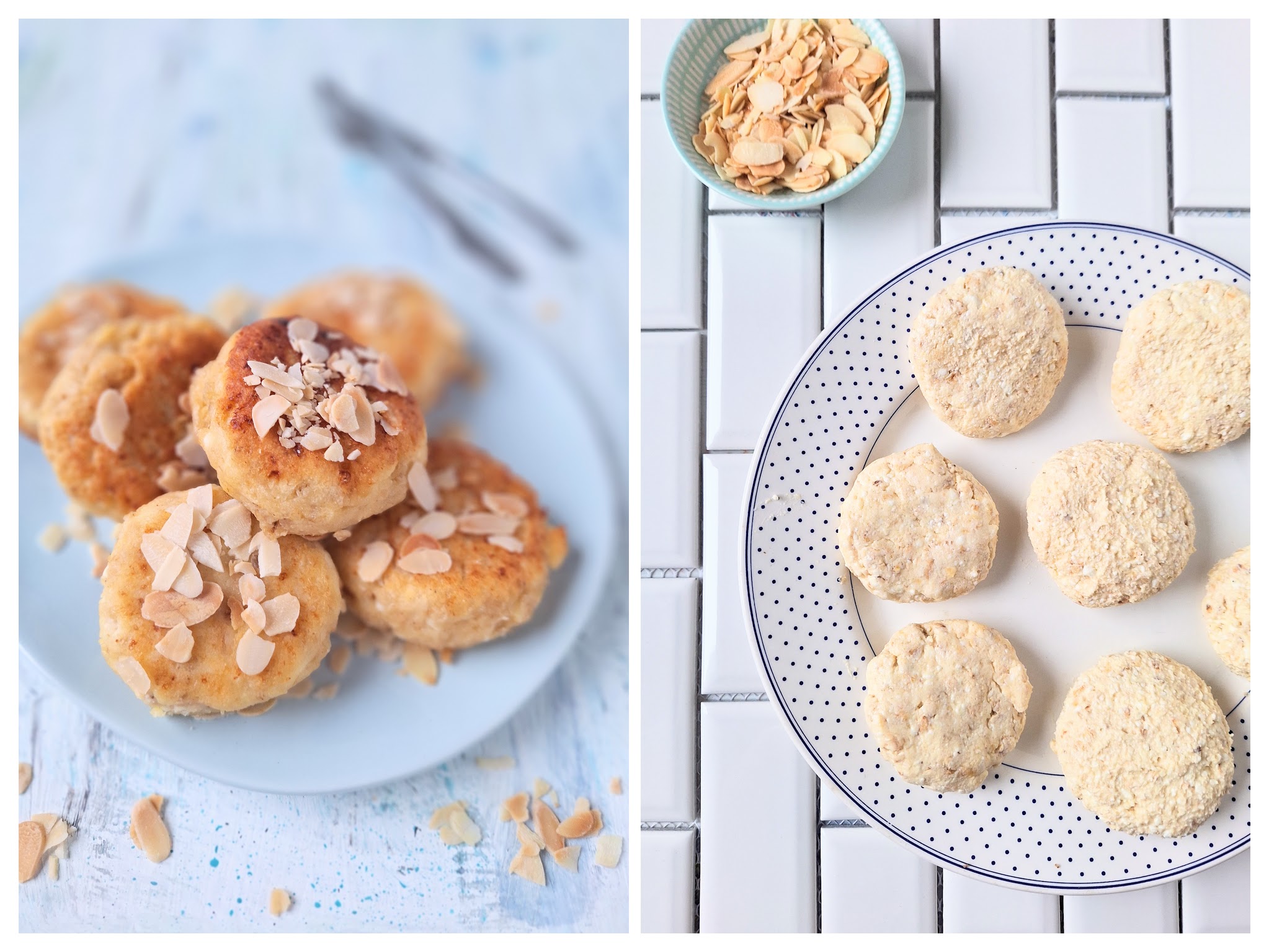 Wer doch ein bisschen Genuss braucht, darf zu Mandelblättchen greifen. Entweder du wendest die geformten Bratlinge vor dem Ausbacken in den Mandeln für eine extra knusprige Kruste, oder du röstest sie kurz fettfrei in der Pfanne an und bestreust die fertigen Taler damit.