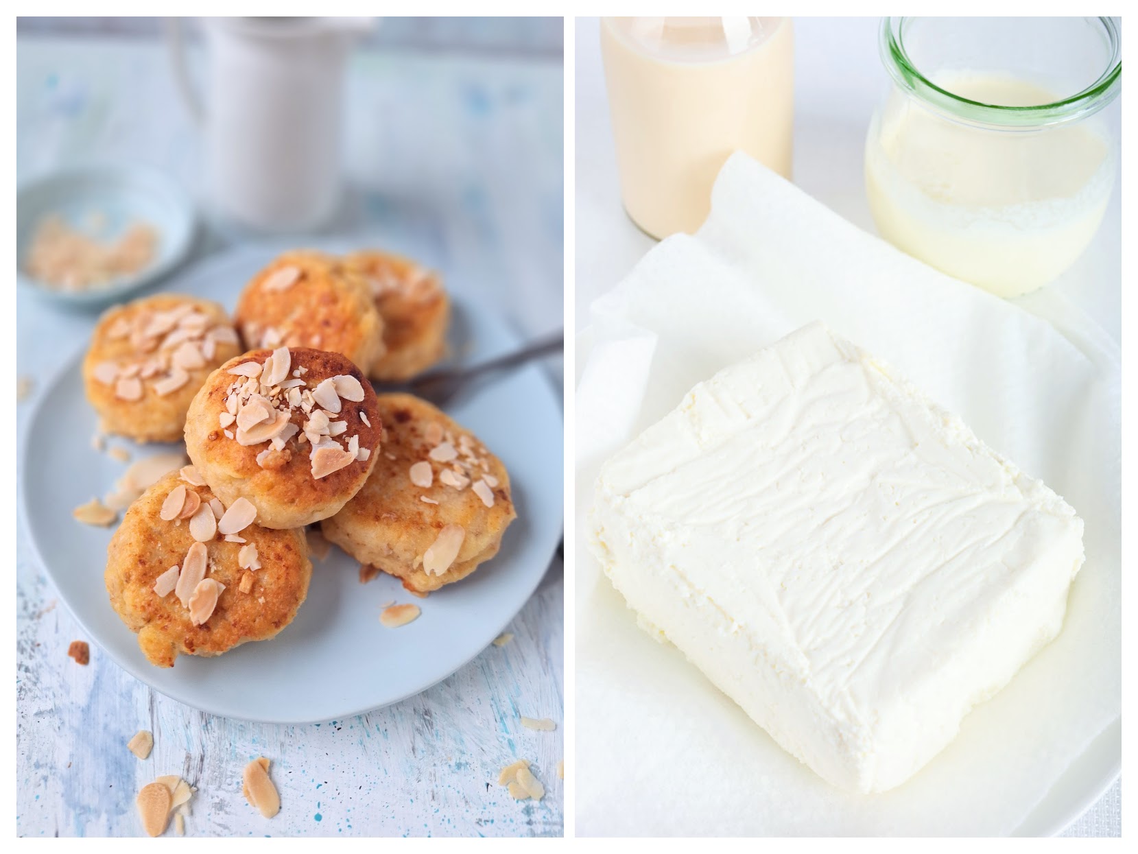 Syrniki oder Quarkbratlinge gab es schon hier auf dem Blog. Goldene saftige Quark-Puffer mit gestampften Kartoffelnverfeinert, serviert mit einer dicken Schicht Zucker oder fruchtiger Marmelade. So herrlich appetitlich, dass einem das Wasser im Mund zusammenläuft…